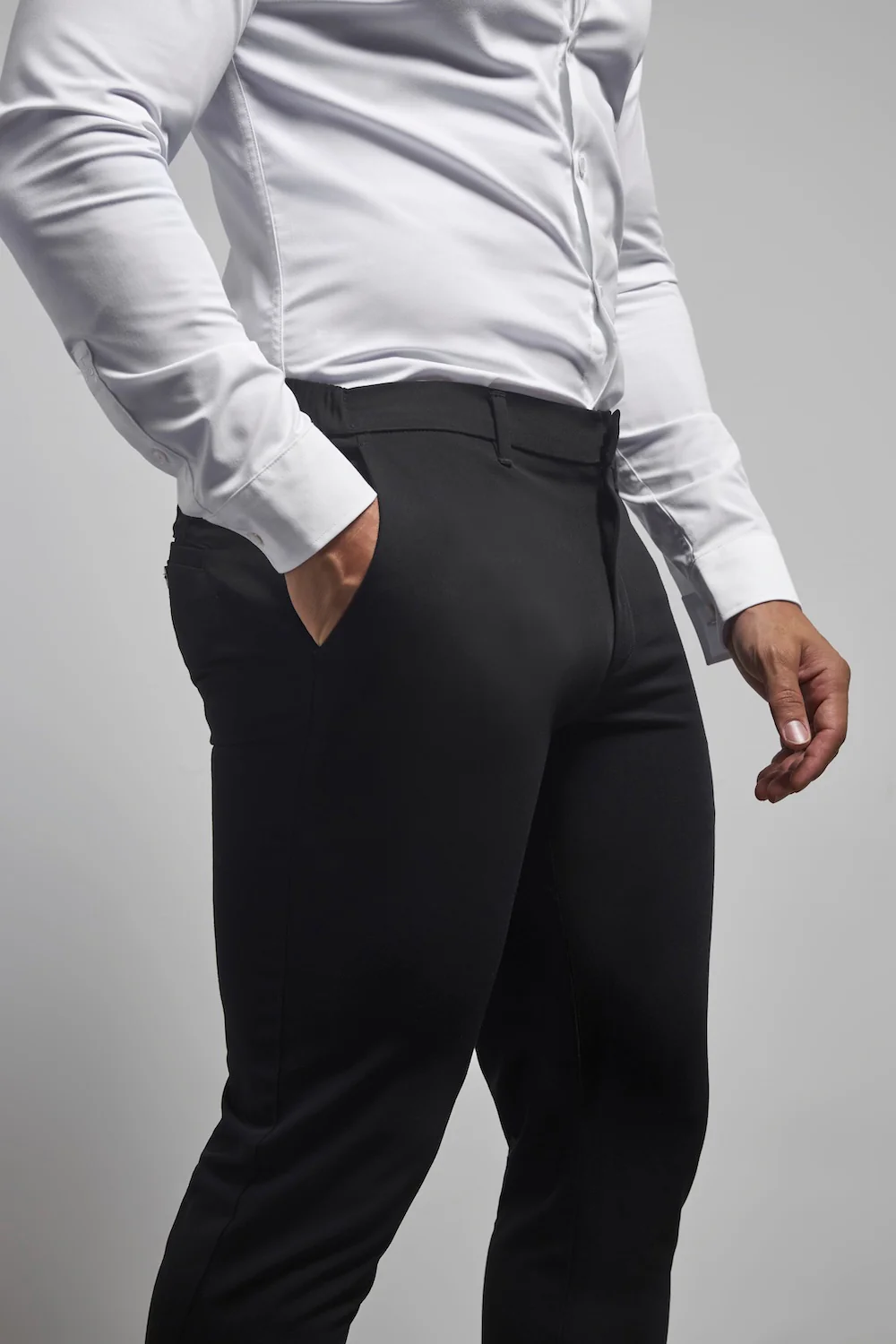 Finally—formal trousers that actually fit your legs. Designed for men with muscular legs and glutes, our Muscle Fit Essential Trousers offer extra room in the seat and thighs, tapering cleanly from knee to ankle for a smart, tailored silhouette. No more sizing up, tight thighs, or bunching at the waist. These trousers bring elevated structure with everyday ease.
