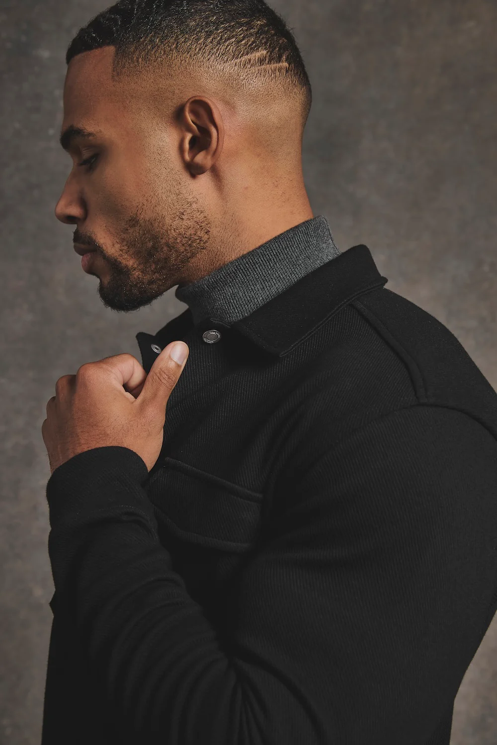 A refined take on the everyday layer, this Shacket is tailored in our signature Muscle Fit to sharpen your silhouette without restricting movement. Made from a twill-textured jersey with 4-way stretch, it delivers the structure of a shirt with the comfort of a knit. TA-branded snap buttons, a flap chest pocket, and clean side seam pockets complete the elevated look.